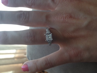 The ring porn is attached, one in natural light and one in the sun because it SPARKLES!!!!