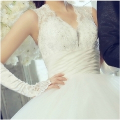 This Fashion Lace Applique Cap-Sleeves Ball Gown will make you think just once before buying it. The fabric and making is so clean that you won't need a to alter it. Other details are :