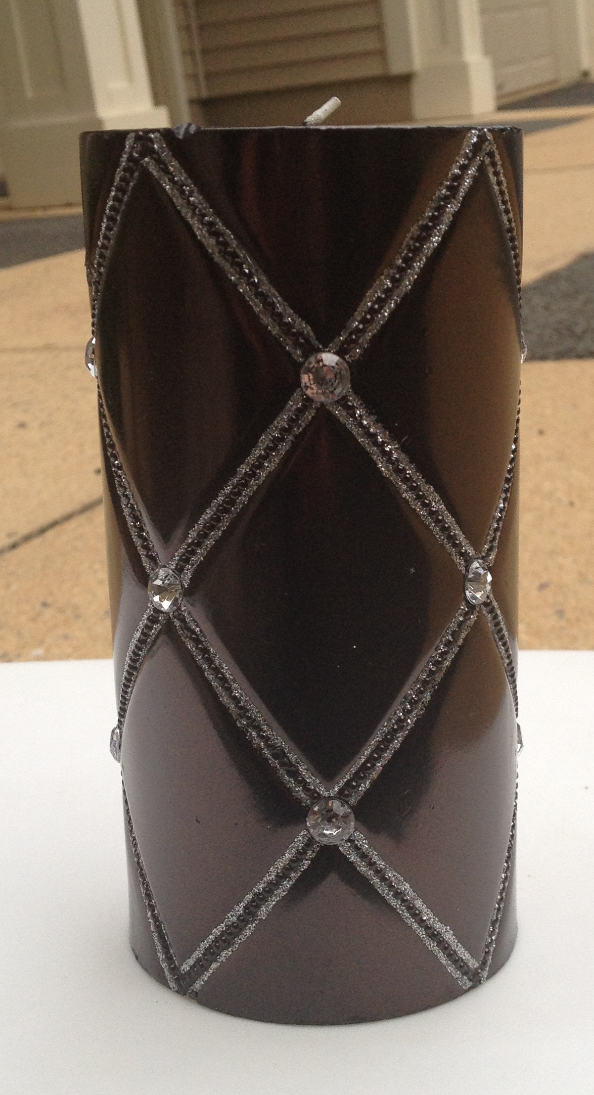 3- Black & Silver Candles (black candle with silver/rhinestone pattern, never been lit) $5.00 each