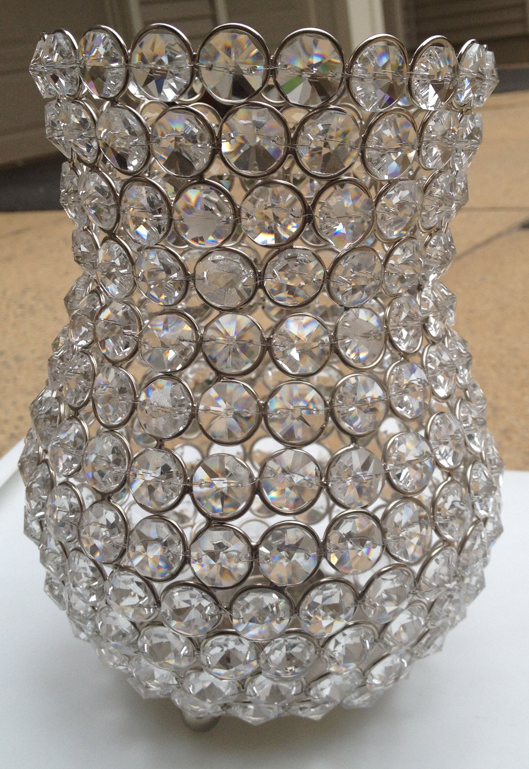 1- Crystal Vase Candle Holder (clear fake crystals, approx. 5" wide mouth, contains a spot for a votive candle to go inside) $15.00
