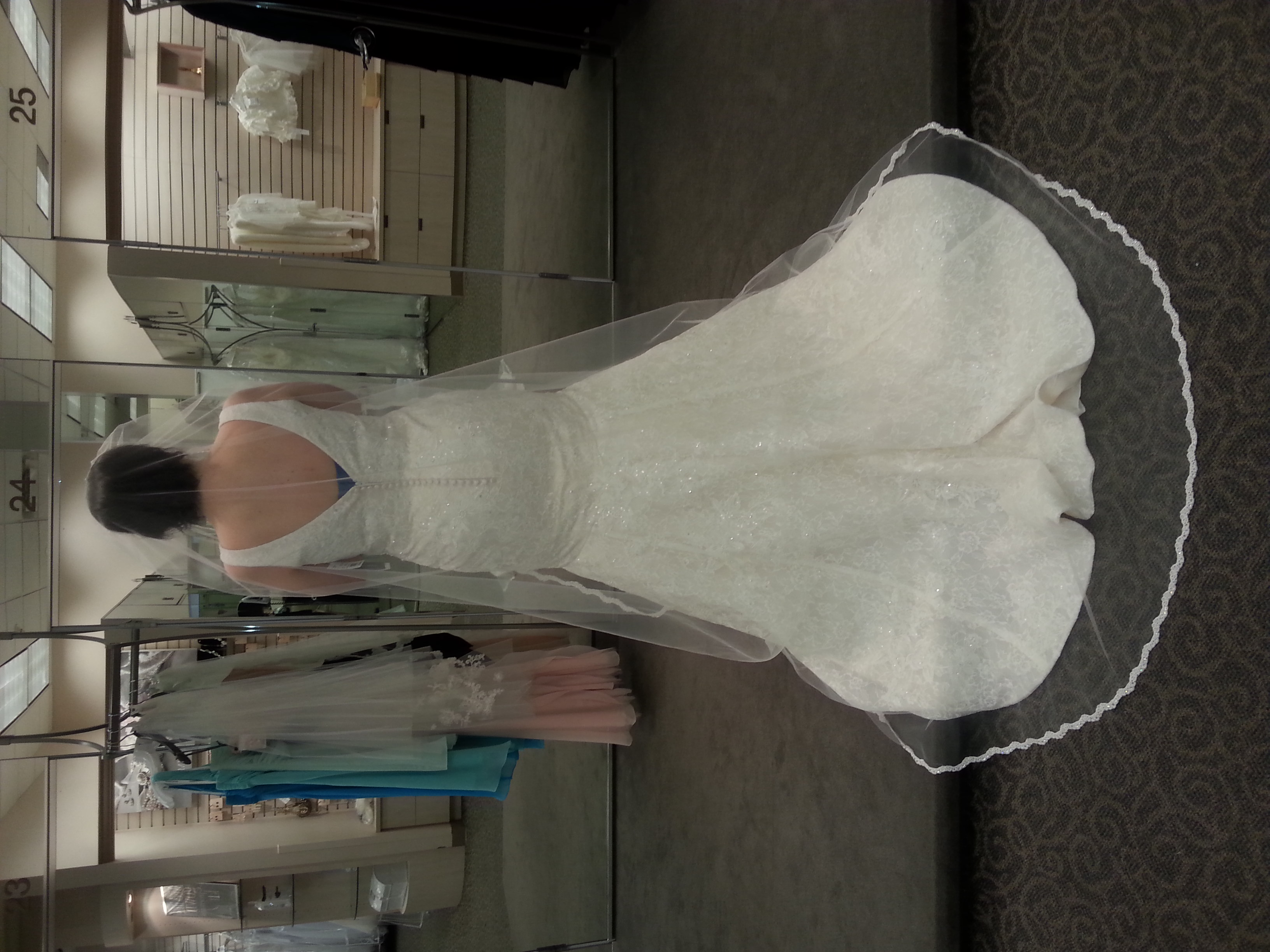 Ok, so was with my MIL and MOH earlier, had to visit David's Bridal to pick up a sash for MOH's dress. Saw the Oleg Cassini 621 and MIL wanted to see it on me.