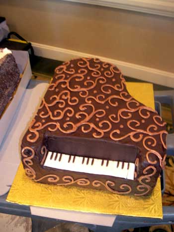 Getting married in a month, and my groom still doesn't have anyone or any place set to do his cake. He has his heart set on a cake in the shape of a grand piano, which makes it even more challenging. (He's a talented pianist). Any suggestions?