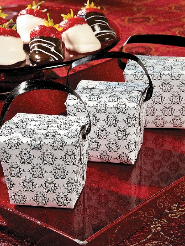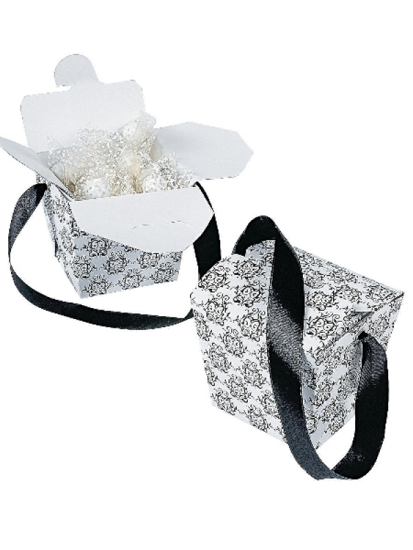 4. Take Out Boxes - I have 220 of these that I ordered from Oriental Trading to be used for a candy buffet favor. Never used. Black and white design with black ribbon. Oriental Trading sells them for $4/dozen. I'll give you all 220 for $25.