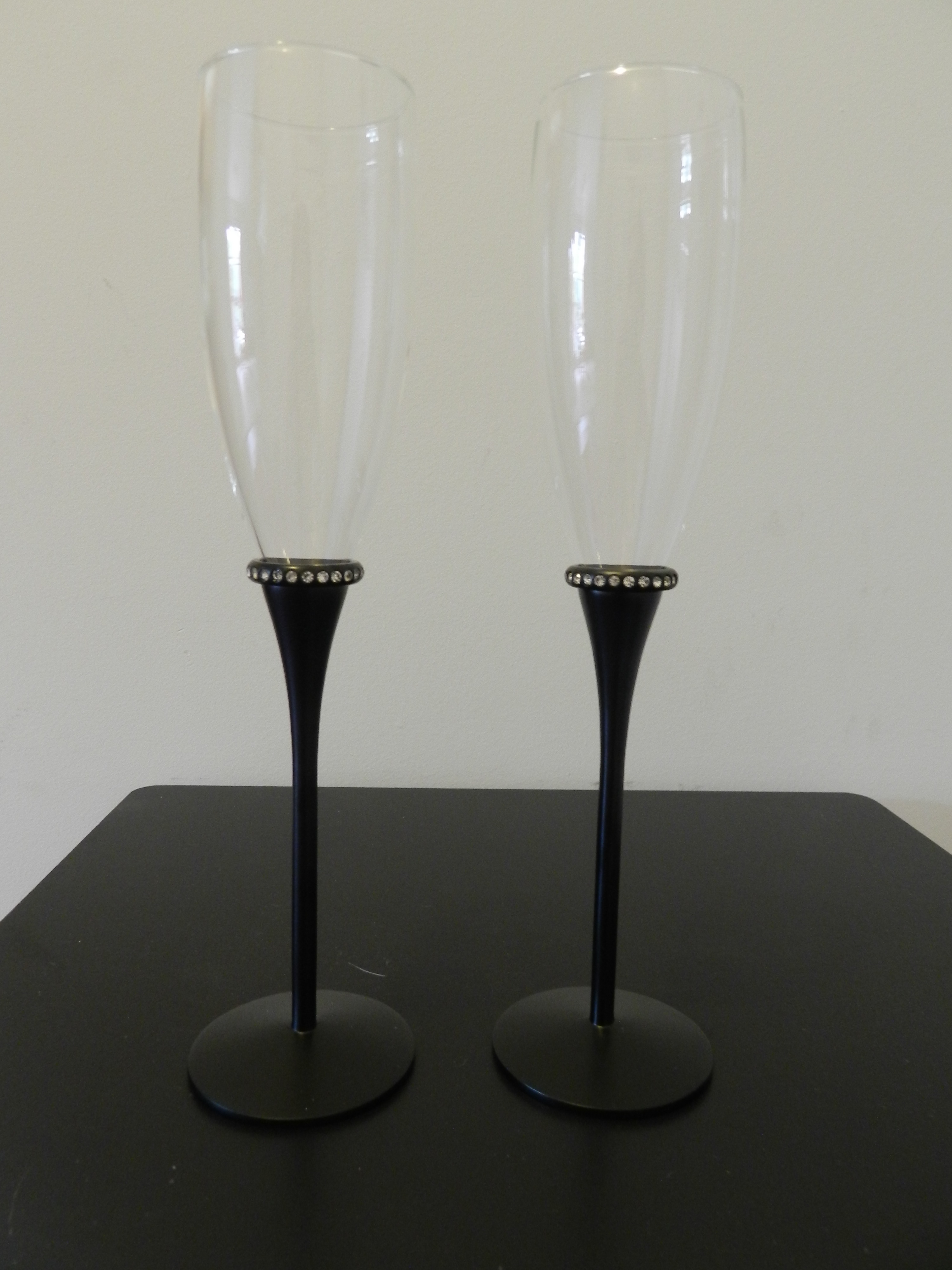 2. Set of Toasting Glasses - Never used (never even been out of the box except to take these pictures). The stems are black if you can't tell from the picture. Asking $20.