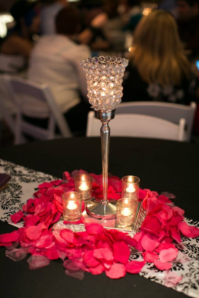 • Here are the centerpieces. They were completely done by the venue, and were simple and pretty. I love how it looked in the reception area with all the candles.