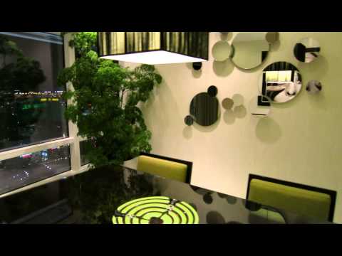 Option 1: When we walked in, both the hubs and I looked at each other and knew it was perfect. I wish I would have gotten a picture of the first view of walking in, but I'll try to explain: You come in kind of at an angle and off to the right is the bar and straight and to the left is an extended living room and behind a clear(ish) wall on the left is a dining table that seats 8. There is a little hallway and butlers kitchen off that as well. Then to the right of the bar is a long hallway with two bedrooms.