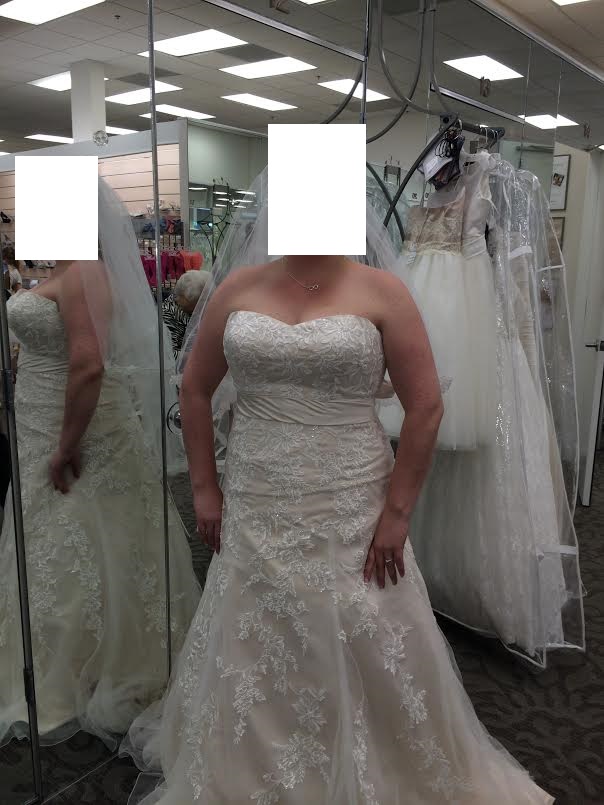 2. I bought a strapless dress knowing I wanted to add sleeves of some kind since it is a winter wedding. I couldn't find any dresses that already had sleeves that I liked as there were not that many out in April. I can't find any lace that matches my dress to make sleeves without buying a whole new dress. (Which is definitely NOT in my budget), so I was thinking about doing an illusion neckline thing. Biggest problem though is I don't know what color since my dress is champagne and ivory. Opinions? [a photo of my champagne/ivory dress is at the bottom]