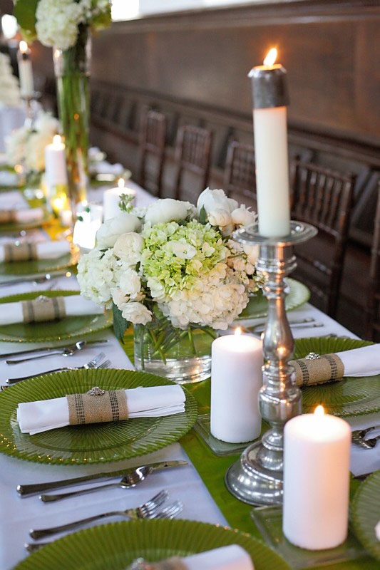I made the mistake of picking and planning things around a pastel color scheme of mint and blush for months before I picked a venue. And the venue I fell in love, a beautiful B&B outside of Lexington, KY, with just won't sit right with such a light color scheme. It's all dark wood and leather and forest greens with an equestrian/huntsman lodge decor theme. So I have redone my color scheme and settled on hunter green, cream/ivory and gold/champagne. My dress is champagne and ivory and very Spring-y with floral appliques, etc, and I plan to use a lot a natural Spring blooms in ivory for my flowers. But how else can I make sure my color scheme doesn't get too heavy?