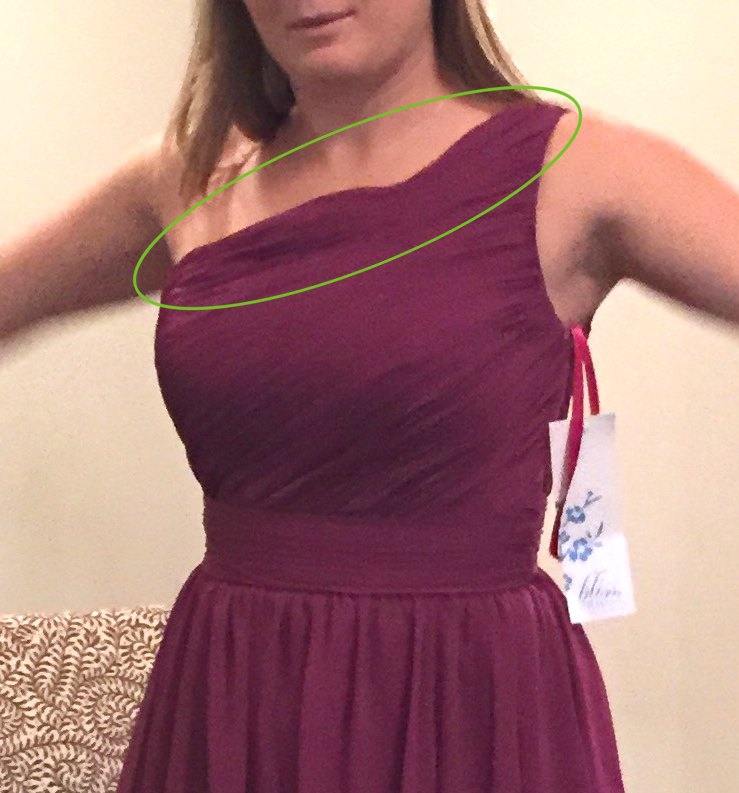 I've attached photos of both what it looks like online and the photo of one of my bridesmaids trying it on where you will see the bunching.
