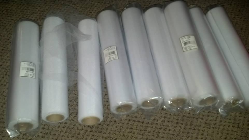 Nine rolls of white tulle from Oriental Trading 1 foot by 25 yards each. Seven still have the packaging around them. Two are out of the packing but I don't believe they were used. I originally paid 11.75 for each plus shipping. $60.00 for all, free shipping.
