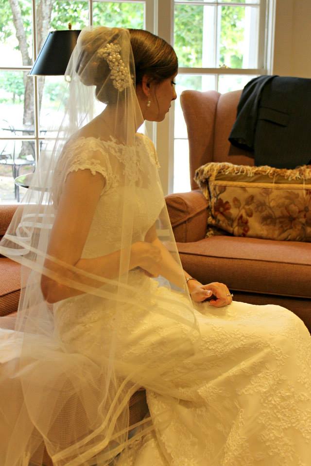 So I bought a lace type mantilla veil , however i am not wearing it on top of my head. Instead I am wearing it clipped to the crown of my head in a small clip. I just like the look of the lace. I plan on wearing it for most of reception ....