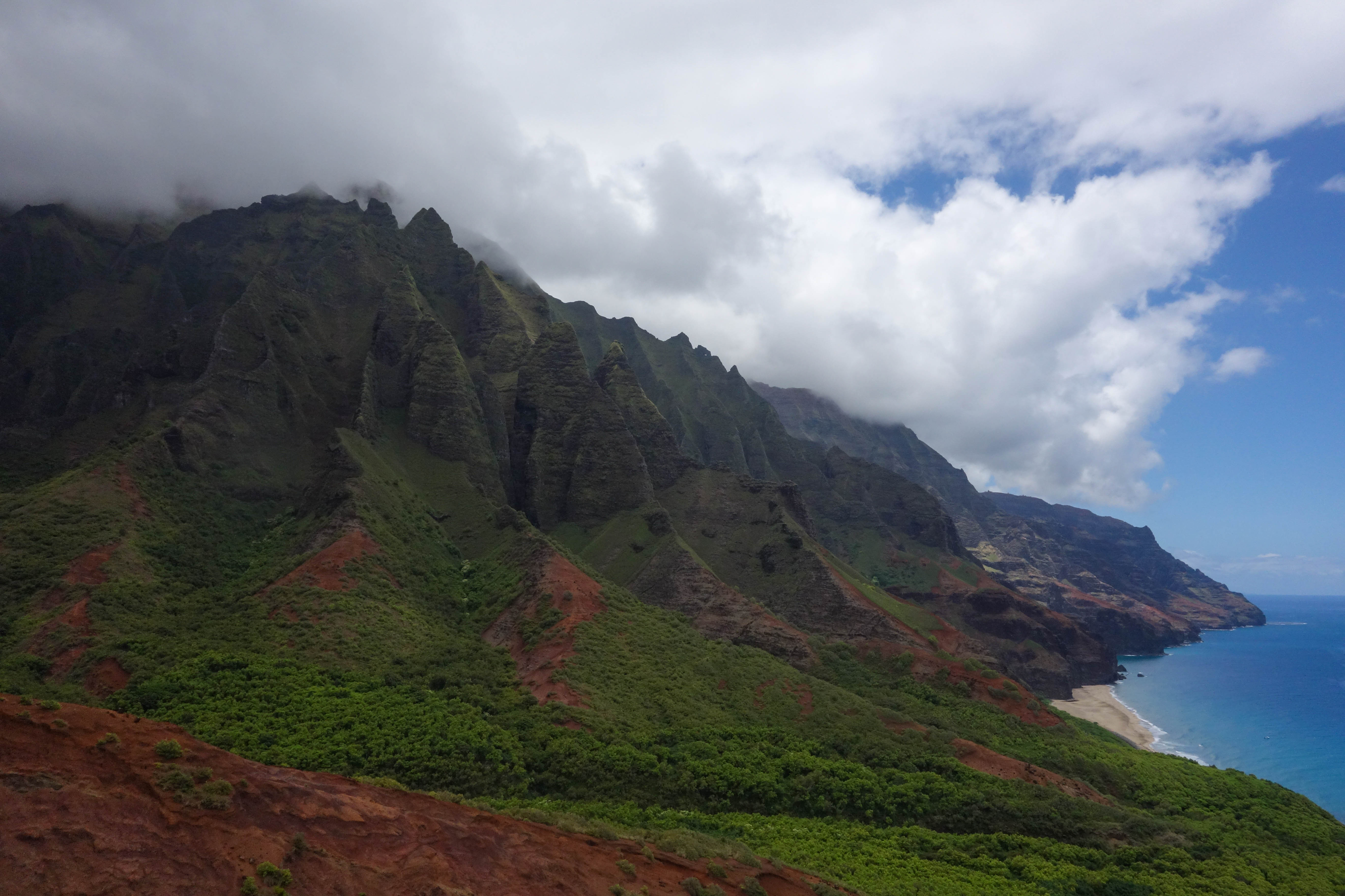 Then we went to Hawaii for 2 weeks on honeymoon, which was amazing! We spent 1 week in Kauai, where we hiked the entire length of the Kalalau trail on the Na Pali coast, which is notorious for its treacherously narrow spots next to steep drop-offs along the sea cliffs, but is seriously the most stunningly beautiful place I have ever been. After 4 grueling days doing that we spent 2 relaxing days in a nice beach resort on the south part of the island. And then we went to the Big Island for a week where we toured a Kona coffee plantation, hiked in Volcanoes National Park, and then in Waimanu valley on the north end of the island.