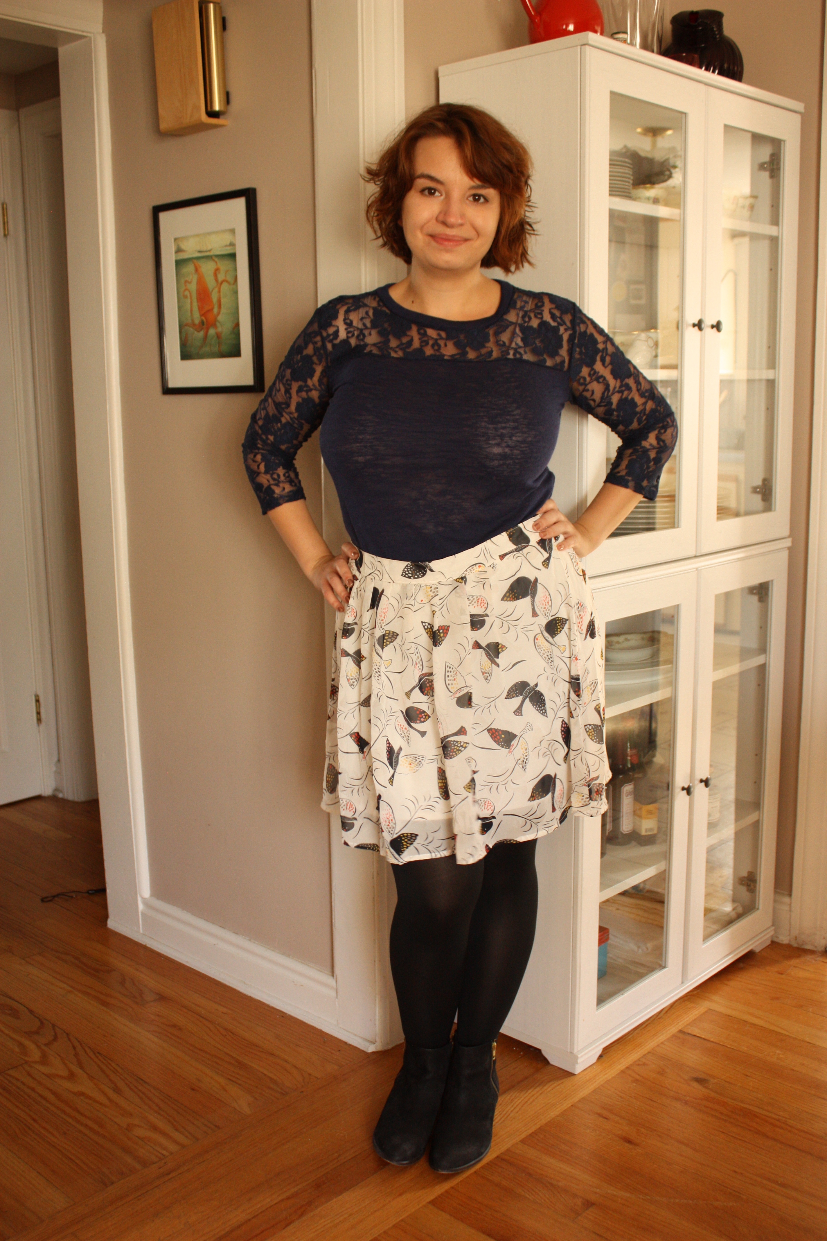 • I always wear a cami under lace tops like that - never looks bad to me. I see it often on other women as well. But I agree that a bandeau would probably work pretty well too. Also - love that skirt? Is it from Old Navy? I feel like I just saw it recently.
