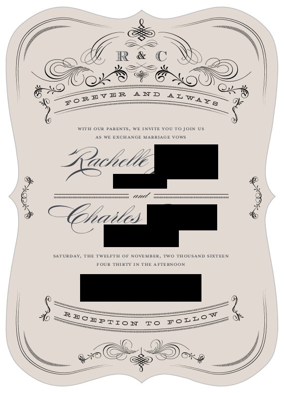 Okay ladies, FI & I have decided that this is the invite we want. I found it on Shutterfly. I wanted to keep the wording simple. How is this? My FI, my mom & I are paying for it. I still need to find matching (or at least similar) RSVP cards, Shutterfly doesn't have them.