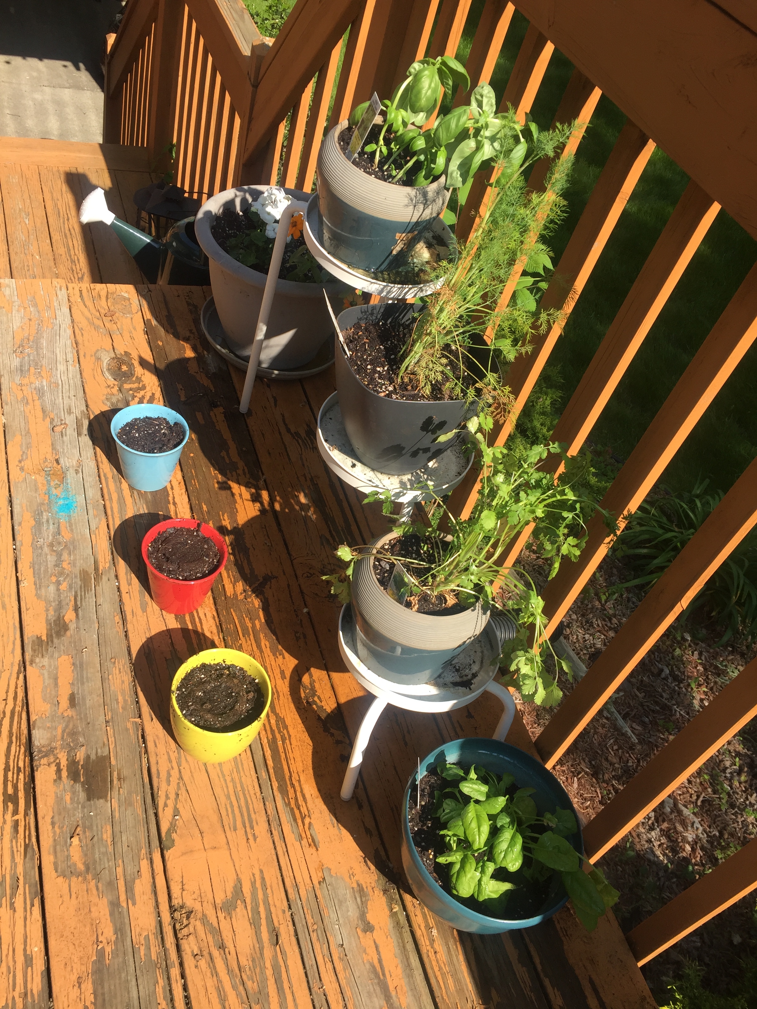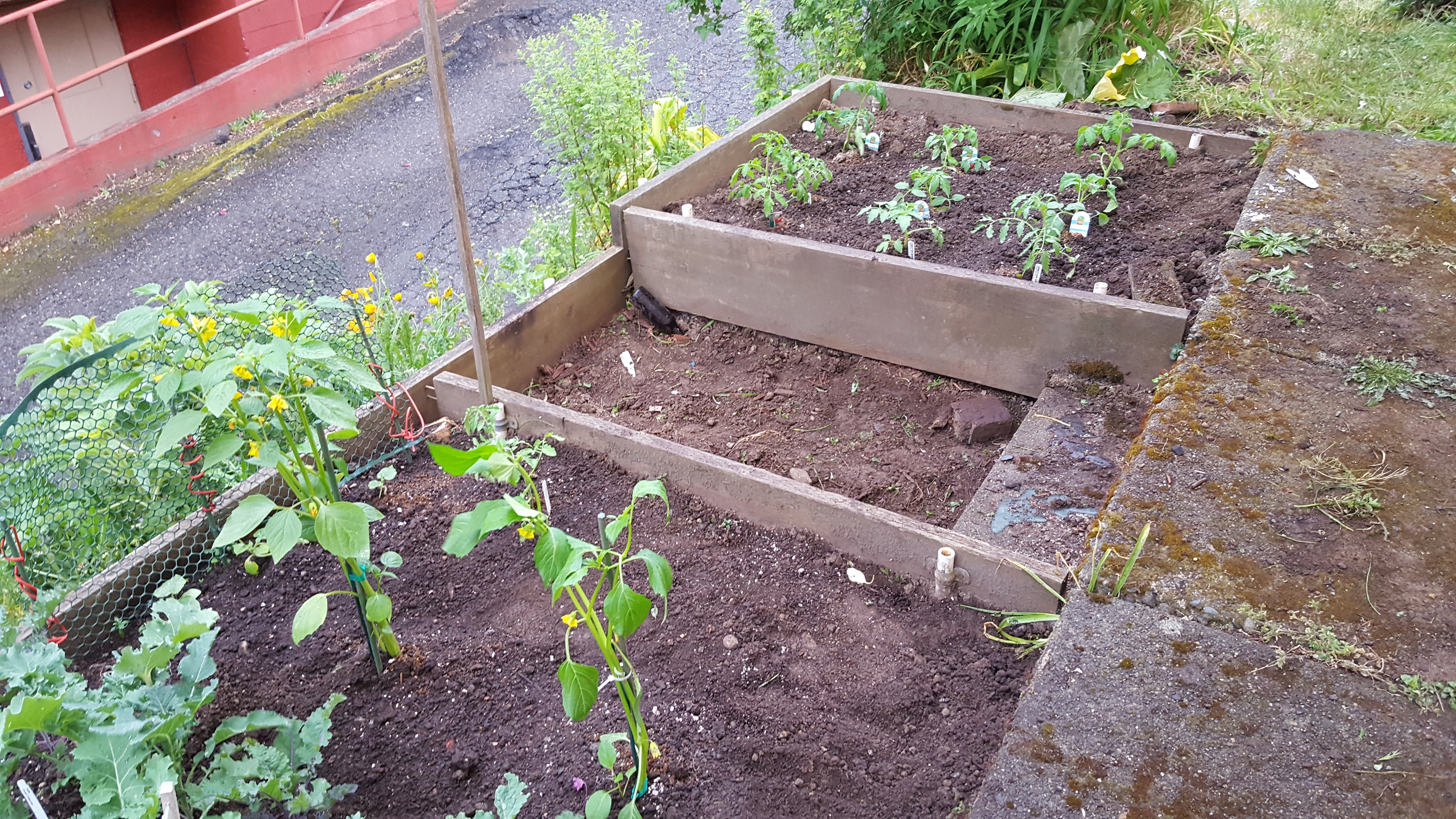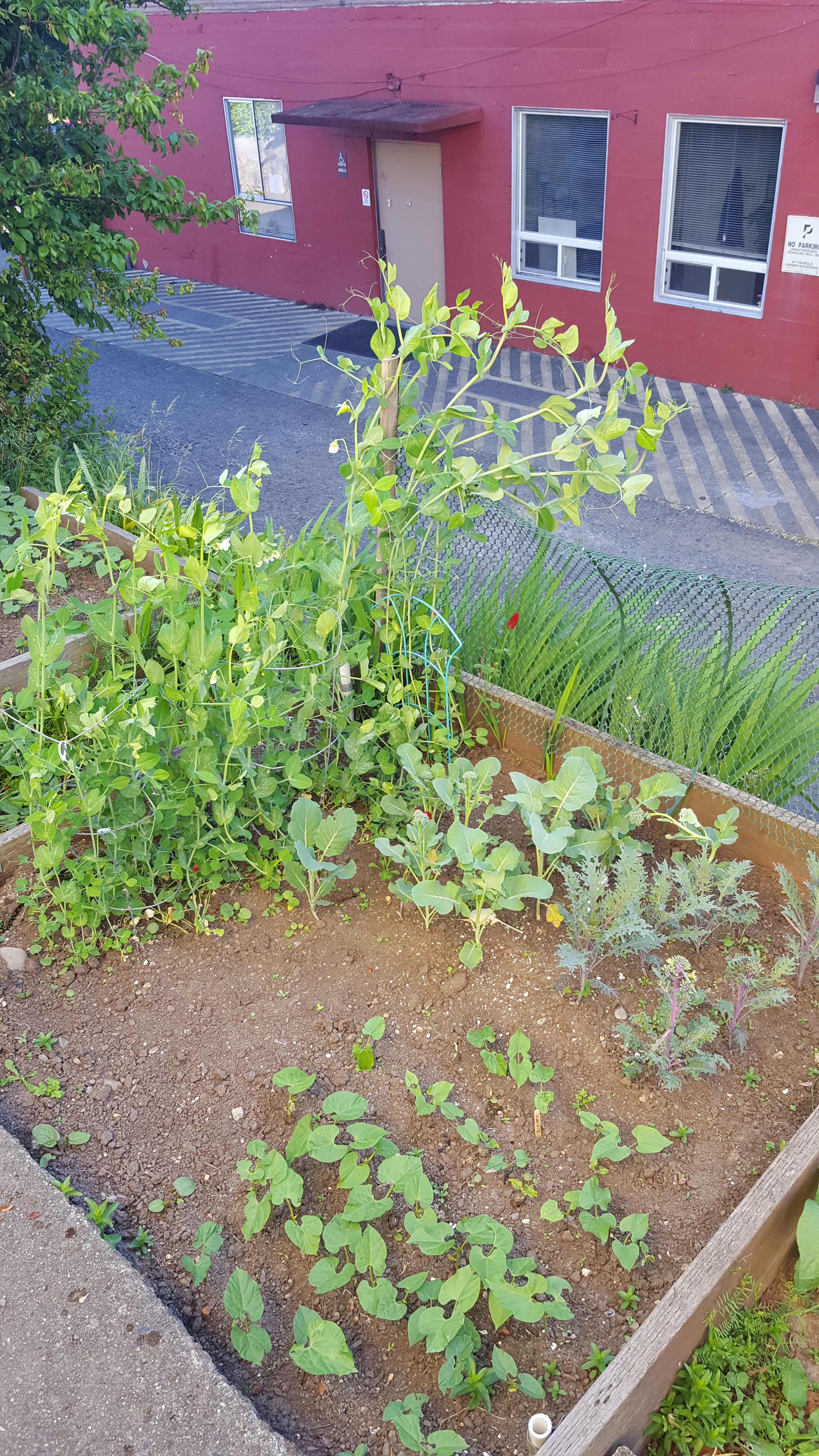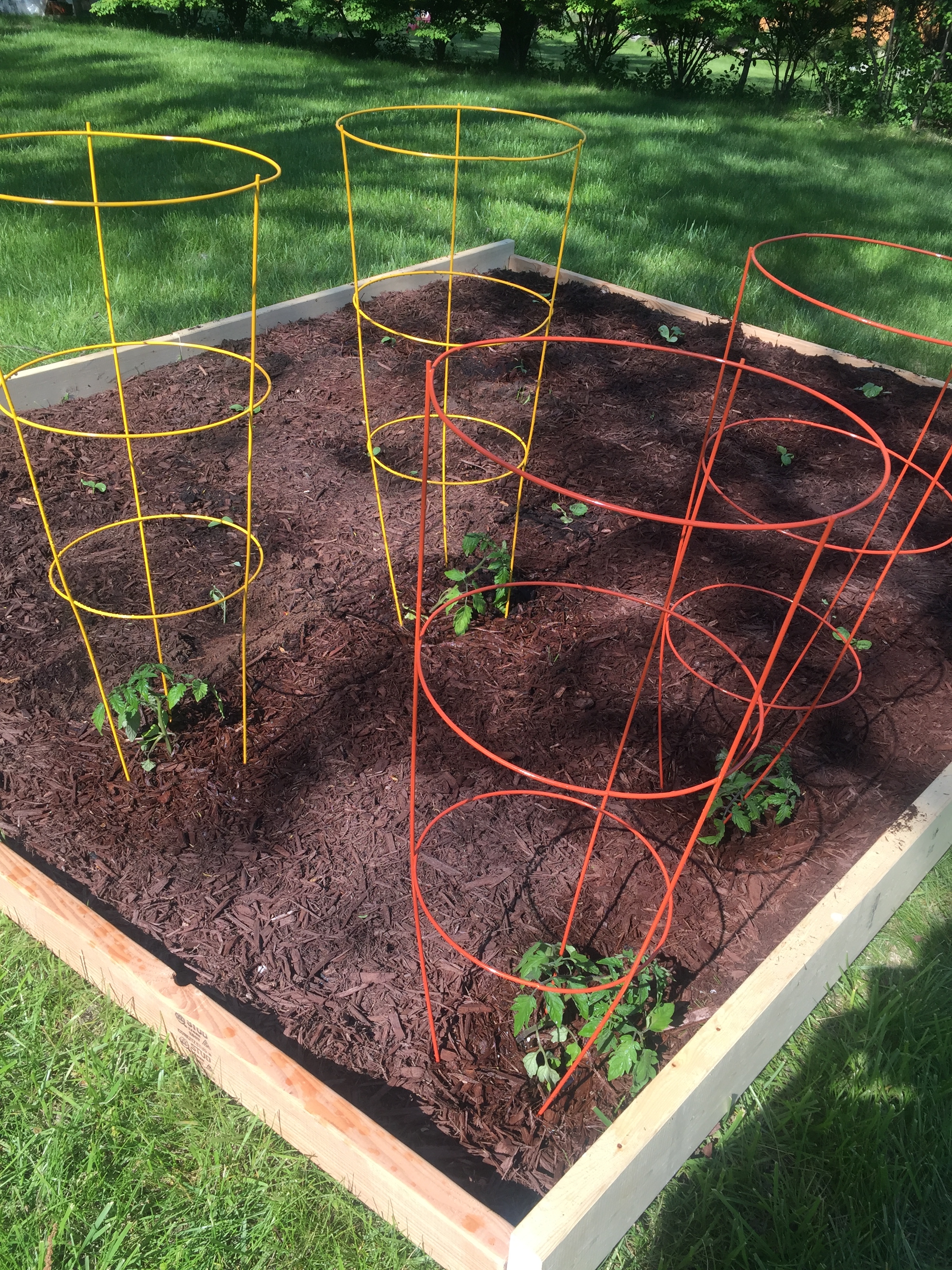 We put in our tomatos today. Our snap peas and lettuce are ready to eat. Everything else is going strong.