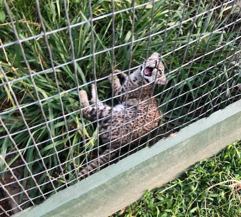 I have a video where one of the other visitors got too close and that cat jumped onto that cage wall about 7' up and hung on!