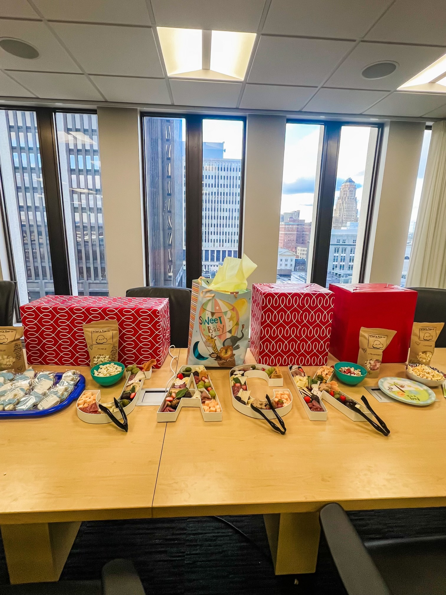 • @charlotte989875, I love that your work threw a surprise baby shower for you!  And those charcuterie boards spelling out his name is extra neat.
