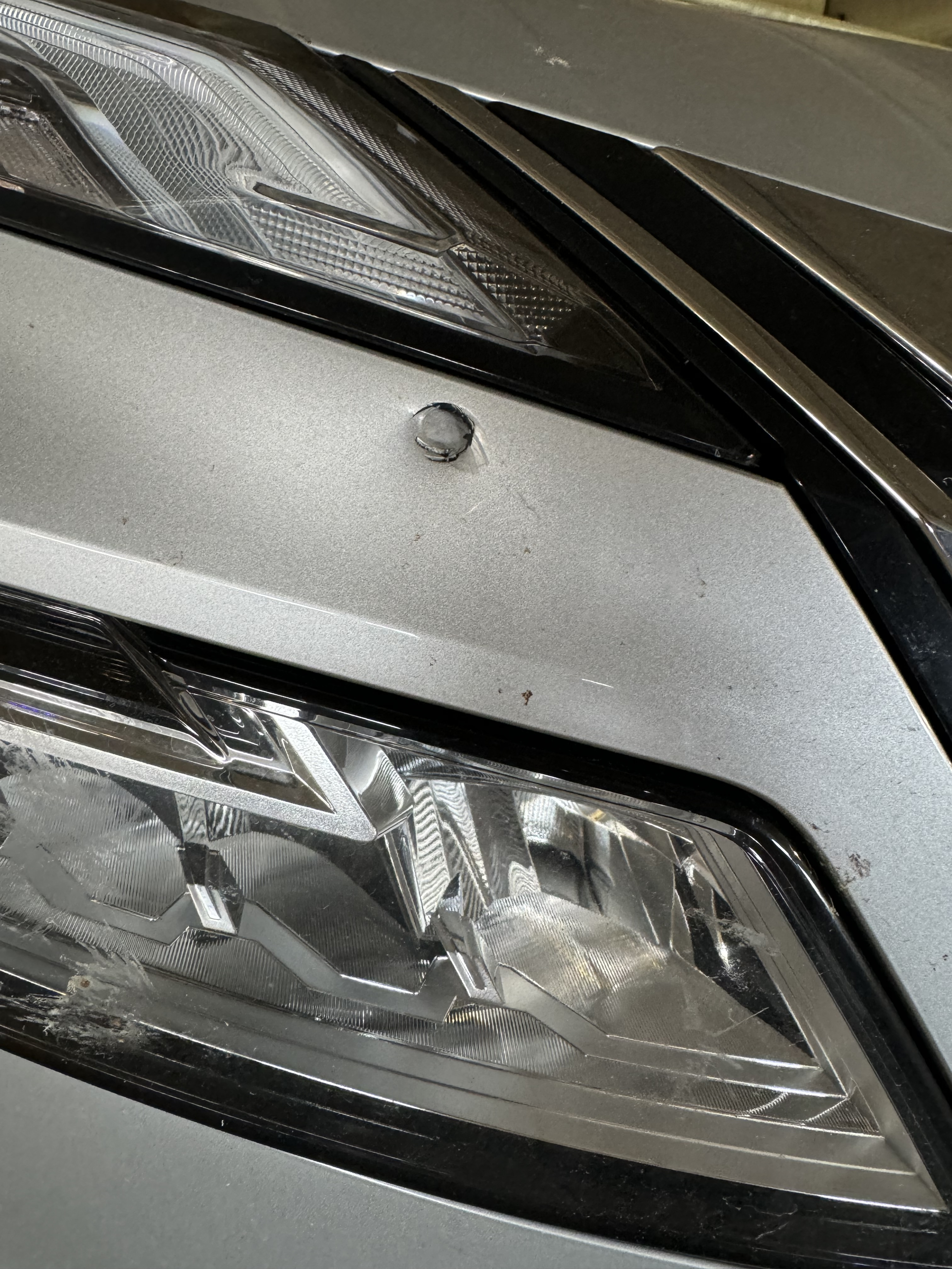 Also, i couldn’t make an appt with the dealerships auto body shop till the 23rd.  Take a look at what I found on my car. Bullet hole? Could even be a drill? My deductible is probably more than the fix. I’ll probably be paying out of pocket.  I can go anywhere right?  Also super annoyed if this was intentional on my 3 month old car.  Grrrr.